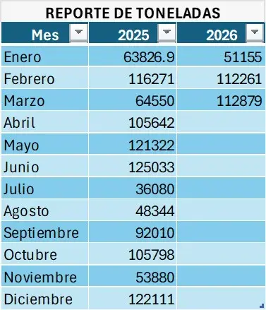 Conoce nuestro reporte de toneladas desde el año 2025 hasta este año vigente:
